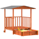 Piaskownica wykonana jest z litego drewna świerkowego i zabezpieczona ekologiczną, wodorozcieńczalną bejcą. Twoje dziecko będzie zachwycone dużym zestawem do zabawy z werandą. Tekstylne pokrycie dachu piaskownicy zapewnia współczynnik ochrony UV 50+ i chroni przed lekką mżawką.