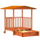 Piaskownica wykonana jest z litego drewna świerkowego i zabezpieczona ekologiczną, wodorozcieńczalną bejcą. Twoje dziecko będzie zachwycone dużym zestawem do zabawy z werandą. Tekstylne pokrycie dachu piaskownicy zapewnia współczynnik ochrony UV 50+ i chroni przed lekką mżawką.